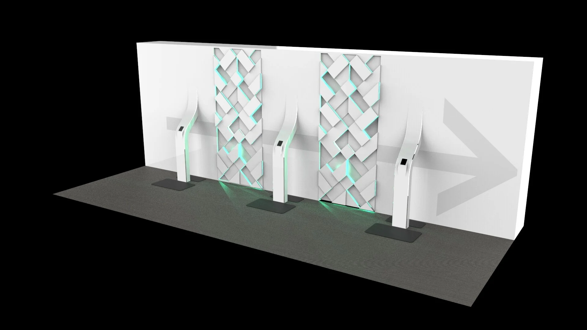 Keeping in mind Uber’s main goal is to have users wait no longer than 5 minutes, we designed the waiting area to be temporary and transitional. This was done by reducing number of seats, have information screens present flight statuses, weather statuses and orientation videos, and lastly, a dot system and beacon for smooth transition from waiting area to vehicle.